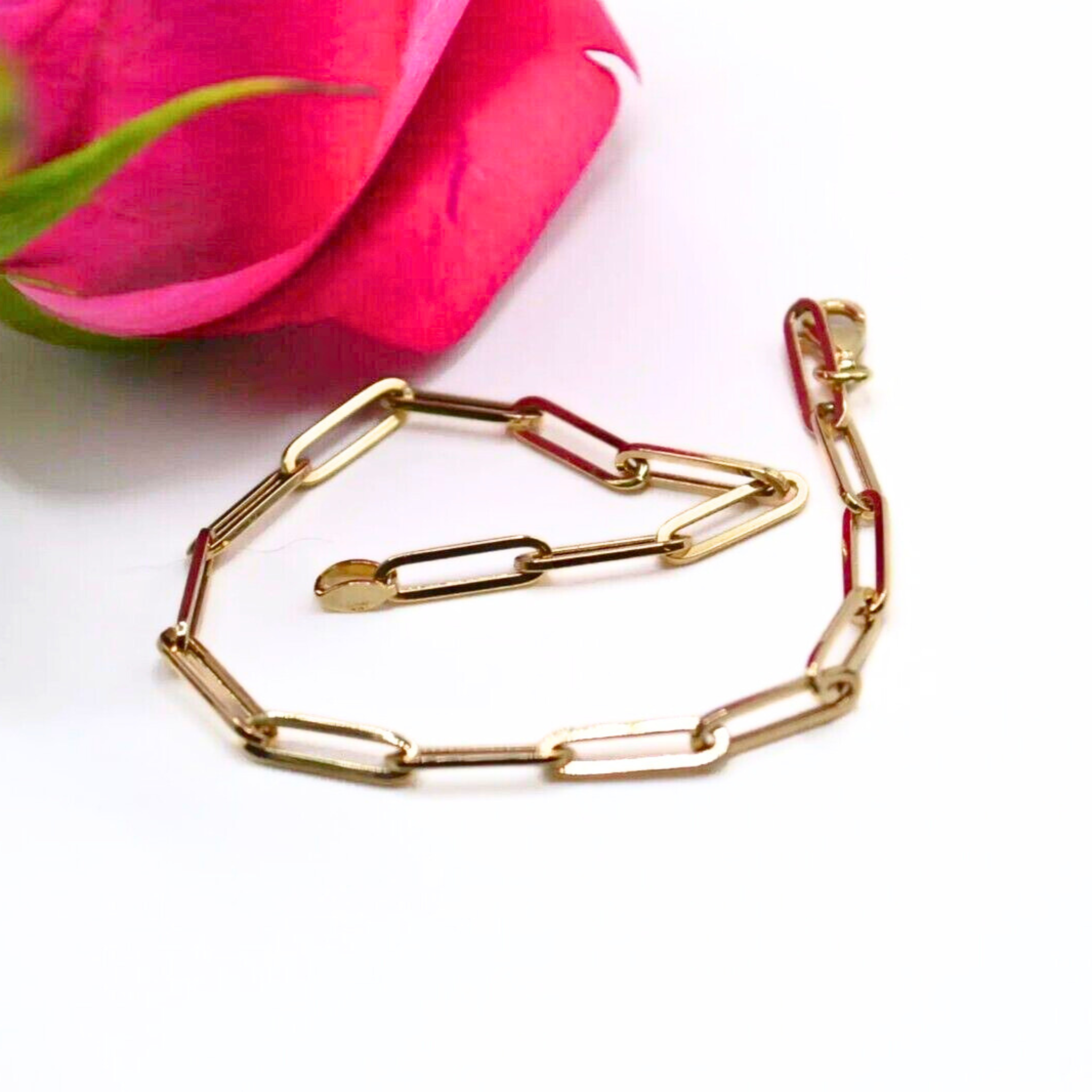14K Gold Paper Clip Bracelet – 7" Solid Yellow Gold Chain, 3mm Link